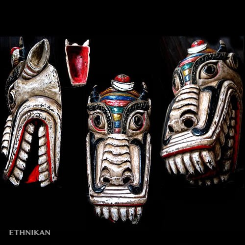 des couleurs très vives correspondant aux cinq couleurs du bouddhisme (jaune, vert, blanc, rouge, bleu)